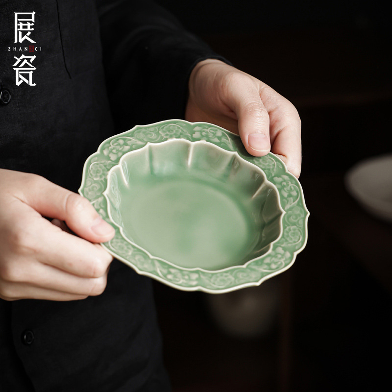 静道覚醒春集翡翠緑陶磁器壺承工夫茶器部品円形茶点皿瓜果皿乾燥泡壺承