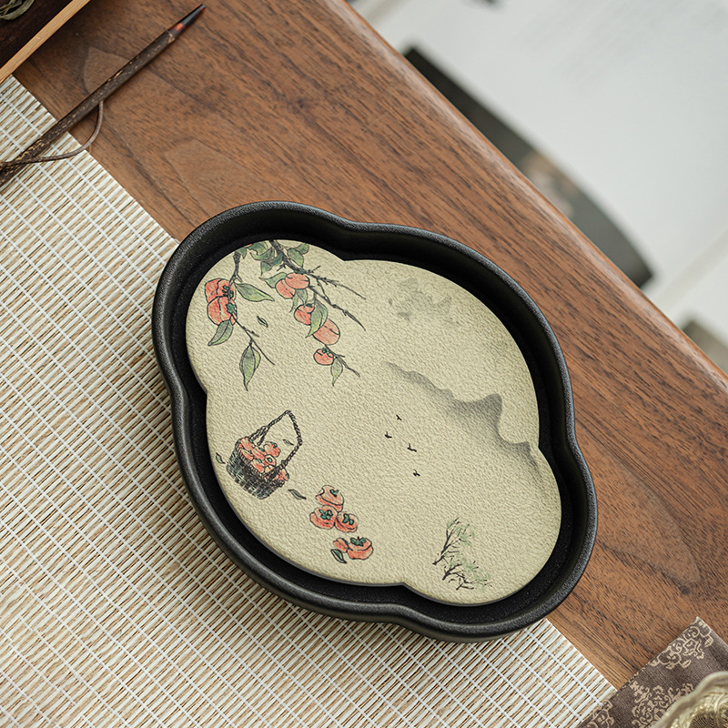 舒嵐草木灰古泥陶磁器のコースター