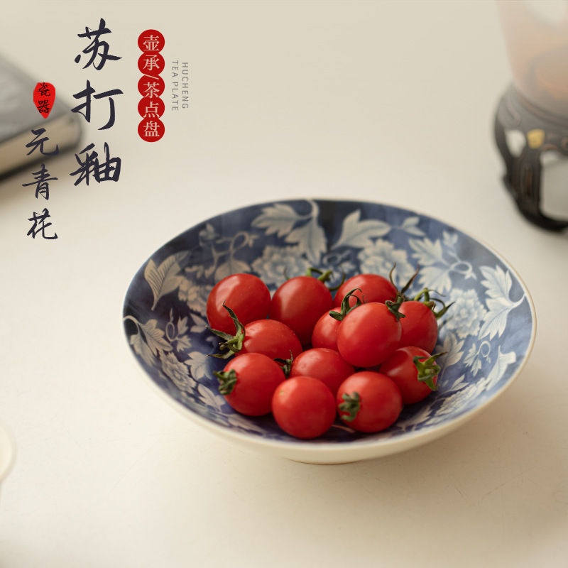 模造古蘇打釉薬元青花茶点皿壷承新中国式開片陶磁器茶器茶壺マット果物皿
