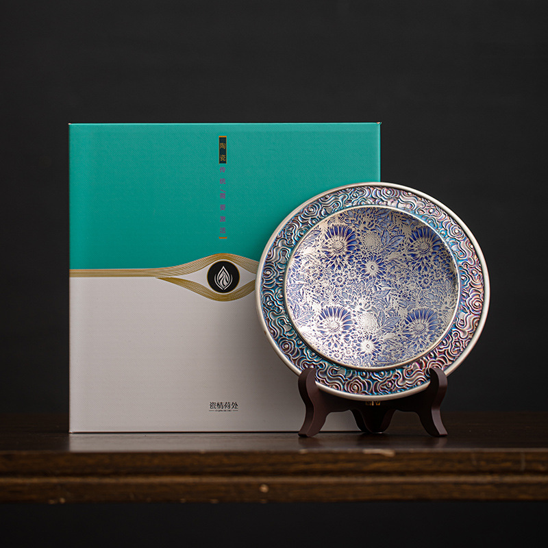 高級青花銀陶磁器壺承茶道部品中国式向陽花乾泡急須トレー