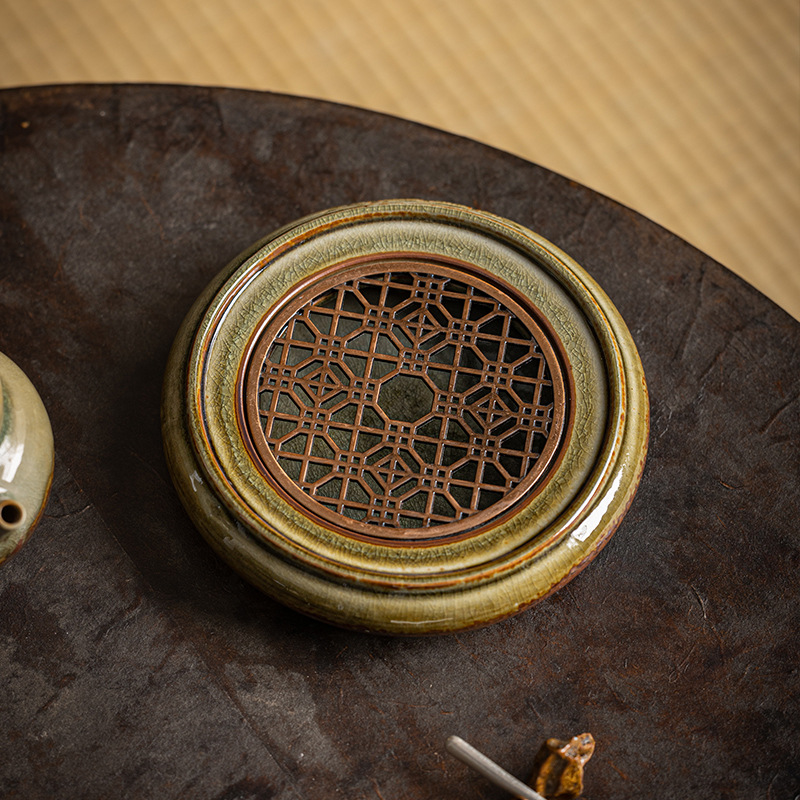 草木灰壺承乾泡台貯水式円形小茶台家庭用レトロ小型養壺托青花小茶皿