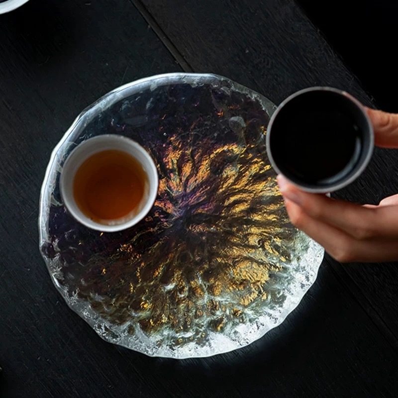 雲巣花嶋雲起壺承ガラス乾泡台貯水茶承貯水茶盤円形茶台茶器部品
