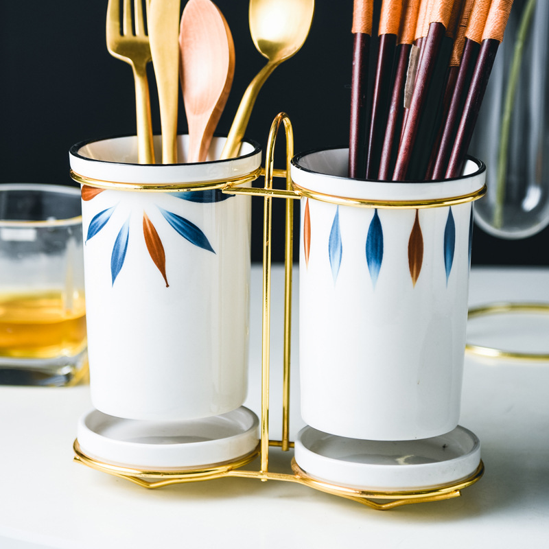 セラミック家庭用二重箸ケージ箸チューブ北欧キッチン食器収納ボックス収納ラックドレイン箸ケージ実用
