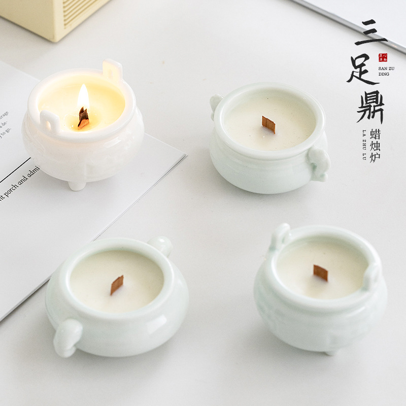 セラミックミニ線香香炉手作りクリエイティブ白磁三脚香炉デスクトップティーテーブル
