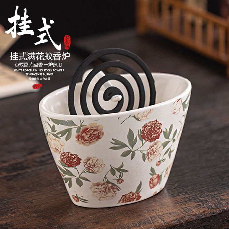花がいっぱいの吊り下げ式大型蚊取り線香炉、香皿、文香箱、香炉、白檀セラミック家庭用屋内アロマセラピー