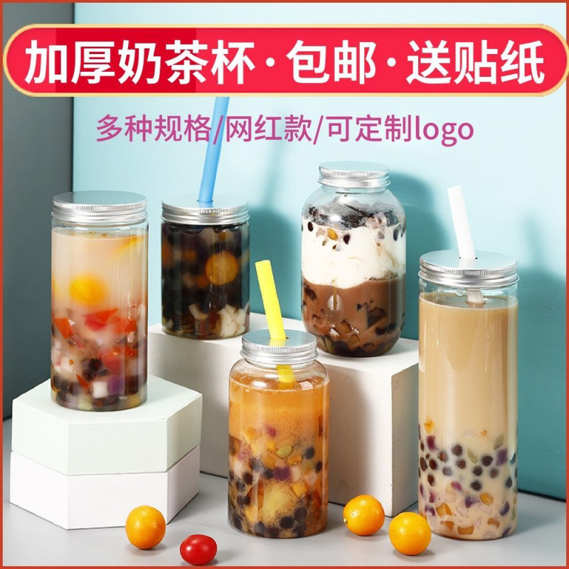 蓋付き透明プラスチックボトル使い捨て卸売飲料ボトルインターネット有名人食品グレードのミルクティーボトルジュースボトル