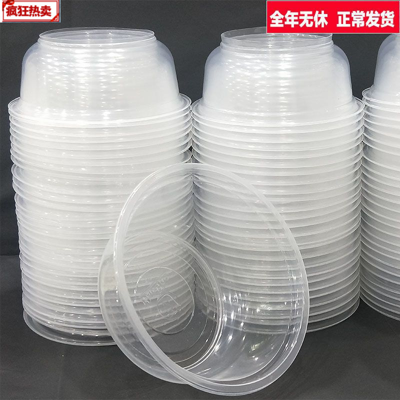 使い捨てボウル蓋なしプラスチックボウル家庭用および商業用使い捨て透明丸ボウル厚みのあるディナーボックス包装箱高温耐性