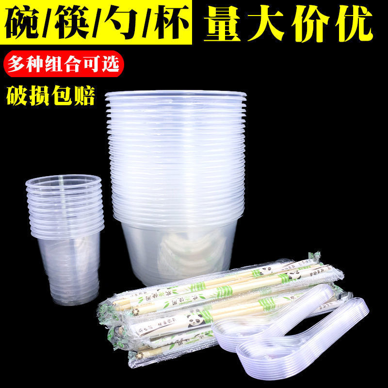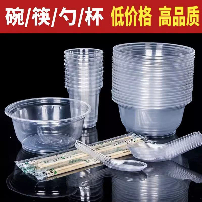 使い捨て食器セット食品グレード家庭用丼プラスチック使い捨て弁当箱食器バーベキュー箸厚みなし