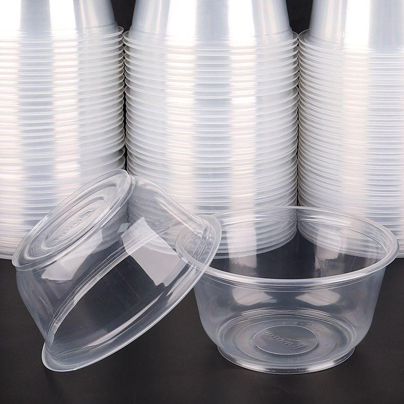 使い捨て食器、厚いプラスチックボウル、テイクアウトファーストフードボックス、蓋付き、家庭用小型弁当箱、丸いスープボウル卸売