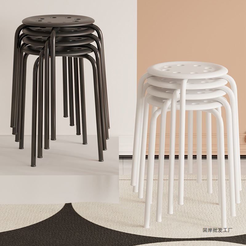 鉄製8穴スツール、ハイスツール、ファッショナブルなラウンドスツール、厚みのある大人用プラスチックスツール、ダイニングテーブルベンチ、家庭用折りたたみ椅子なし