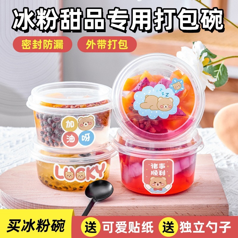 商業テイクアウトインターネット有名人クリエイティブアイスパウダーゼリーデザート屋台特別なボウル蓋付き使い捨て透明包装箱