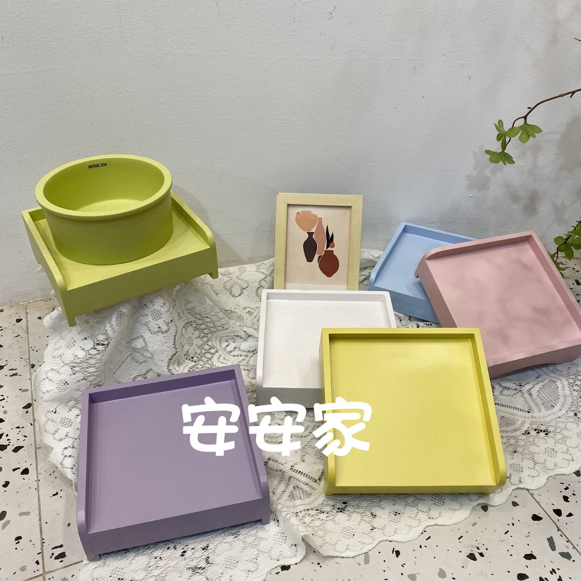 ペットダイニングテーブルカラフルな木製スタンドインスタイル手作りペットボウルスタンド BD 6.5inch 脊椎保護ペットボウルスタンド