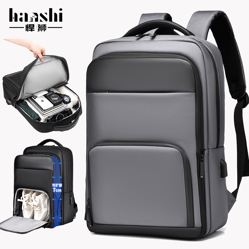 海外で人気のノートパソコンバッグ、拡張機能付き高級ビジネスリュック、多層構造の撥水リュック