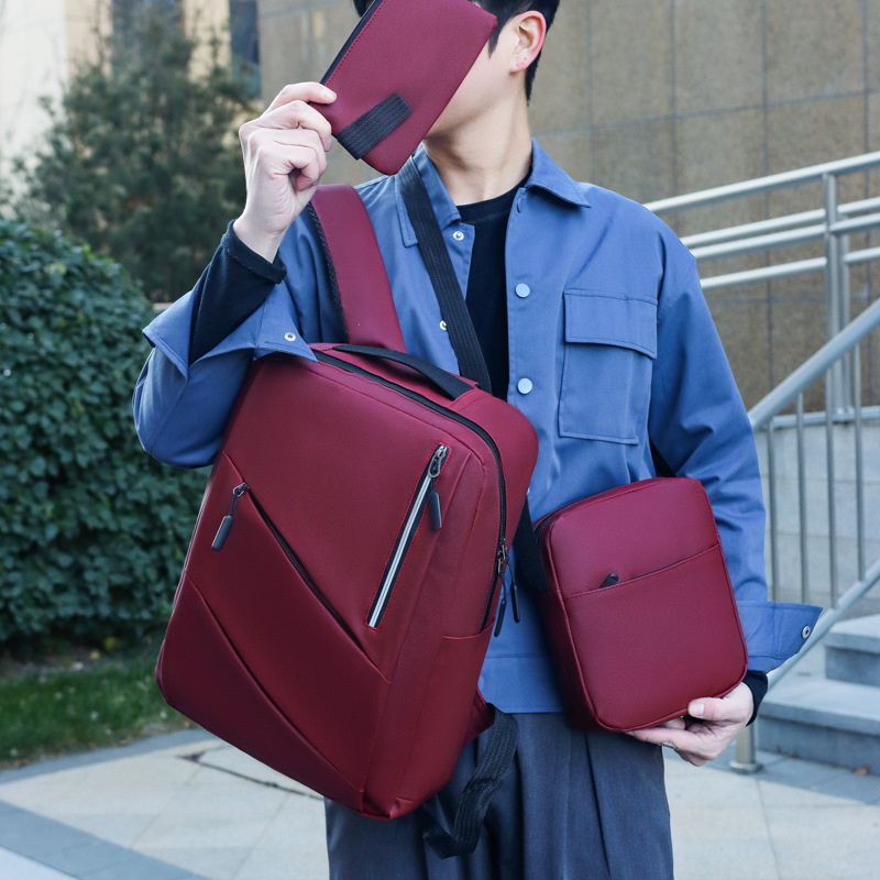 クロスボーダービジネスリュックサック男性USB充電多機能シンプル大容量リュックサック三点セット大学生カバン