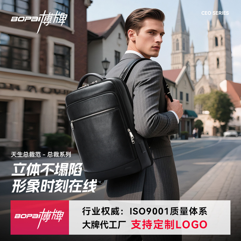 新しいトップ牛革ビジネスバックパック男性大容量パソコンバッグ通勤ランドセル多ポケットバッグ博札