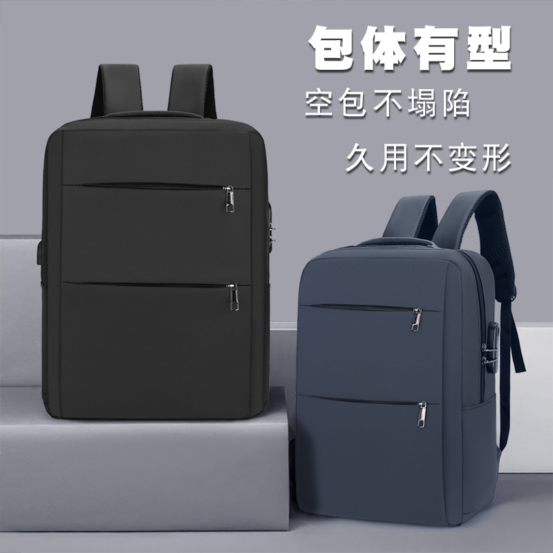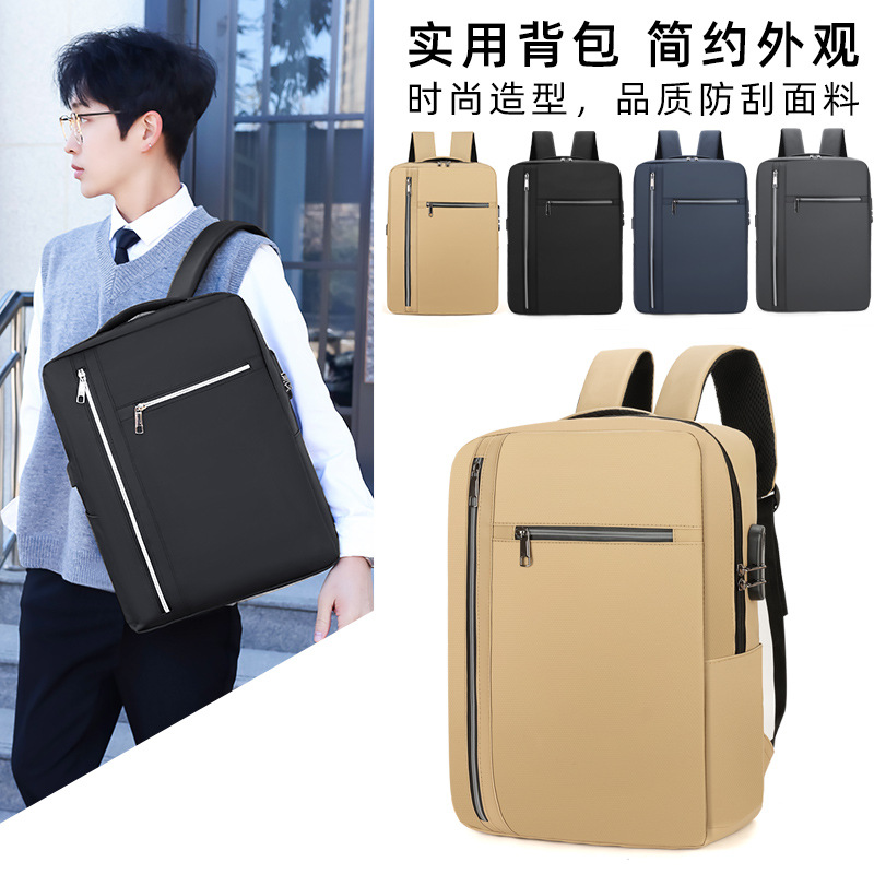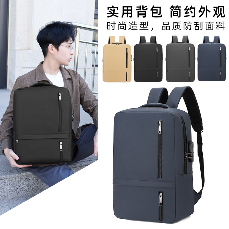 新型USB充電リュックサック男性用ビジネス通勤盗難防止パスワードロック純色皮膜大容量リュックサック
