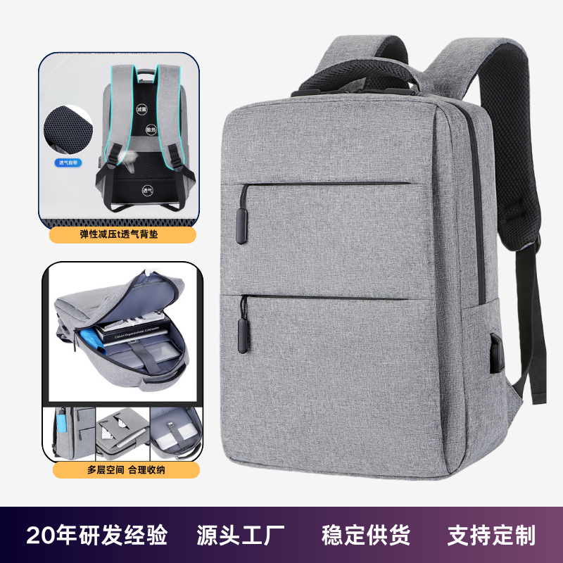 大容量パソコンバッグ シンプルビジネス 多機能USB充電バックパック ロゴ印刷可能 メンズリュック