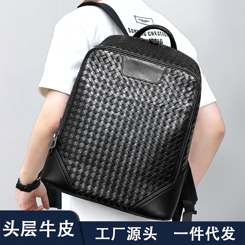 新しい本革編みリュックサック男性ビジネスバックパック多機能旅行カバン男