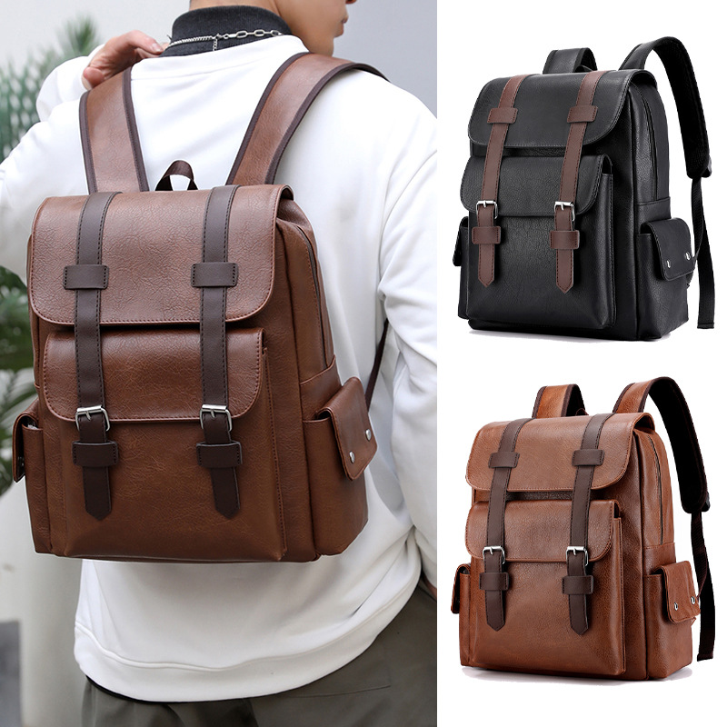 クロスボーダー新しい PU メンズバックパックレジャーシンプルな大容量スクールバッグコンピュータバッグトラベルバッグビジネス通勤バッグ