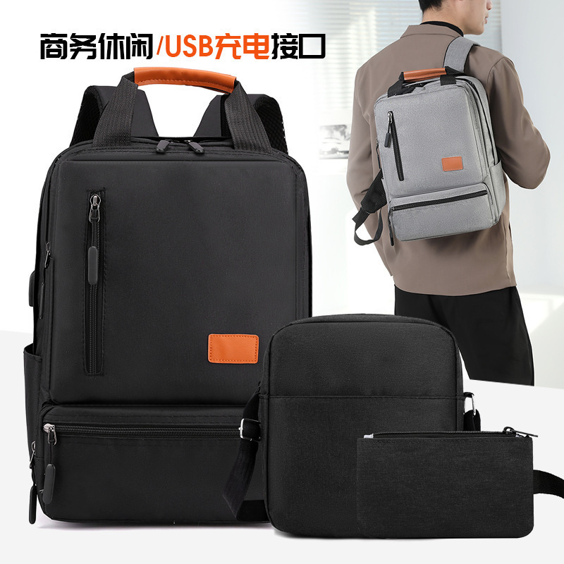 ランドセル大容量高级感リュックサック3点セットカバンメンズバッグビジネスバックパック充电多机能パソコンバッグ
