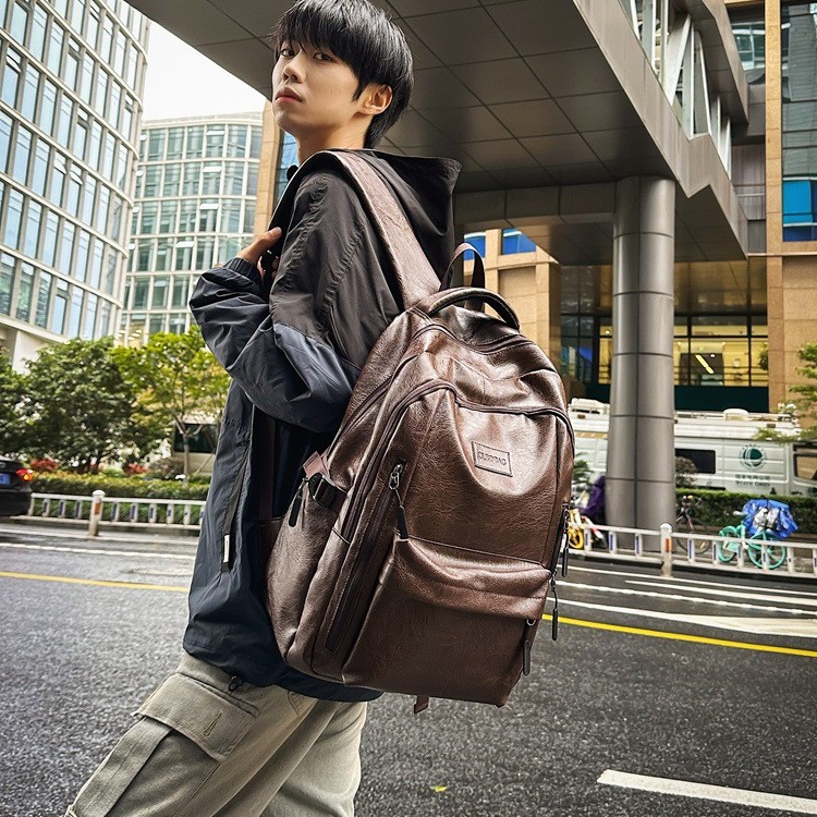 リュックサック男性大容量リュックサックの皮の質感のファッションブランドの大学生の通勤カバンのビジネス旅行の軽いパソコンのカバン