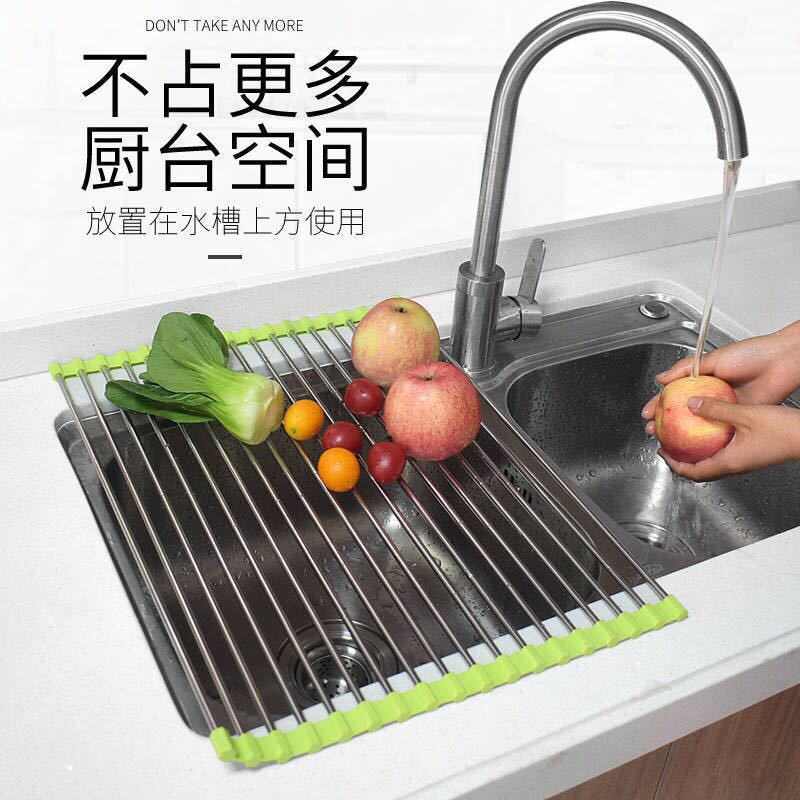 国境を越えたステンレス折り畳み水槽排水棚多機能シリカゲルロールスクリーン家庭用野菜水切りカーテン