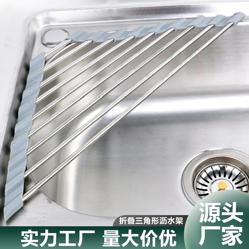 304ステンレス折りたたみ可能三角形水切りラック家庭用キッチンシンク水フィルターラック食器収納ラック