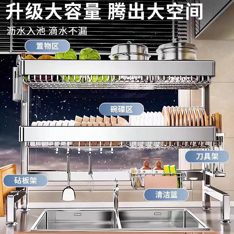 ステンレス製キッチンシンク収納ラック多機能水切りラック食器乾燥棚食器棚