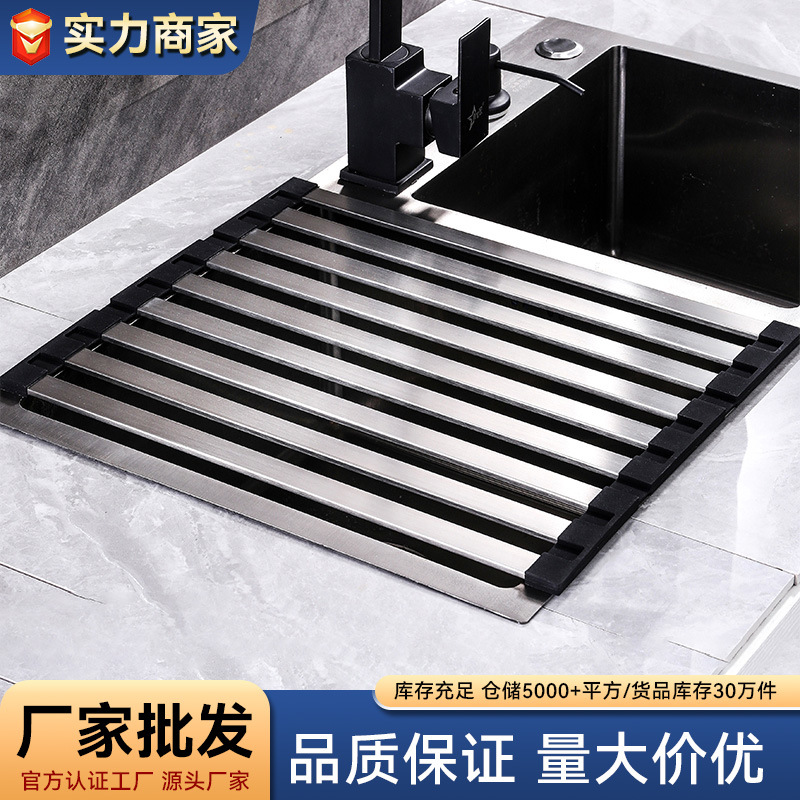 304ステンレス伸縮厨房水槽排水棚碗皿棚食器洗い池コップ雑巾棚