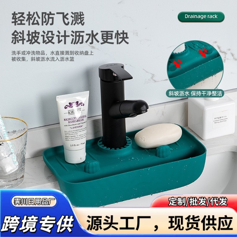 クロスボーダー多機能シリコン排水トレイパンチフリーキッチンバスルーム石鹸収納ラックアロマセラピートレイ