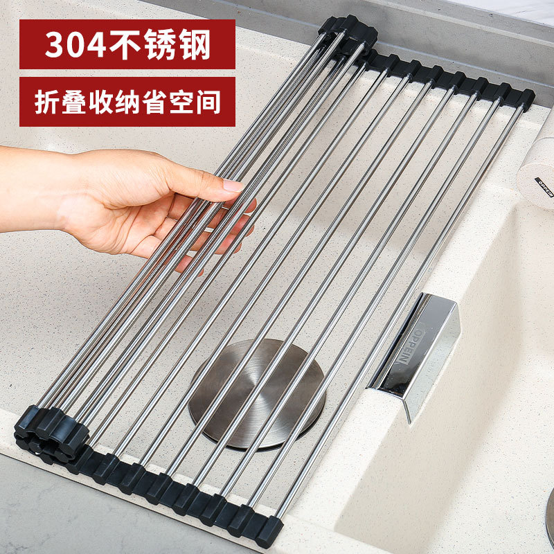 クロスボーダー304ステンレス製の水切りラックの食器と野菜の折りたたみ式ロールスクリーンの棚に多機能の水切りラックを収納できます。
