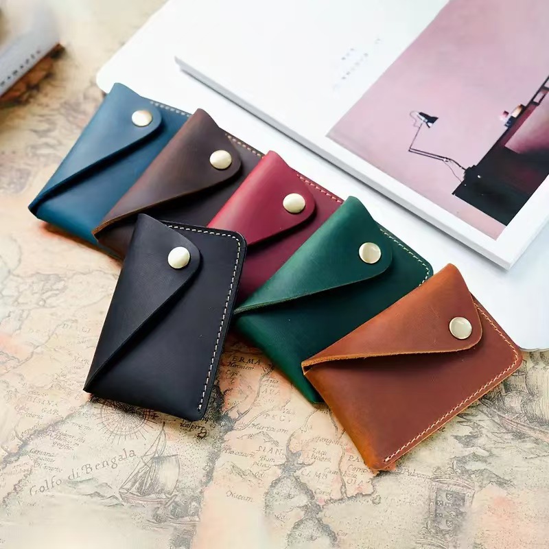越境現物狂馬皮カードカバー創意デザインボタン小銭入れpu皮日本式レトロ小銭入れ