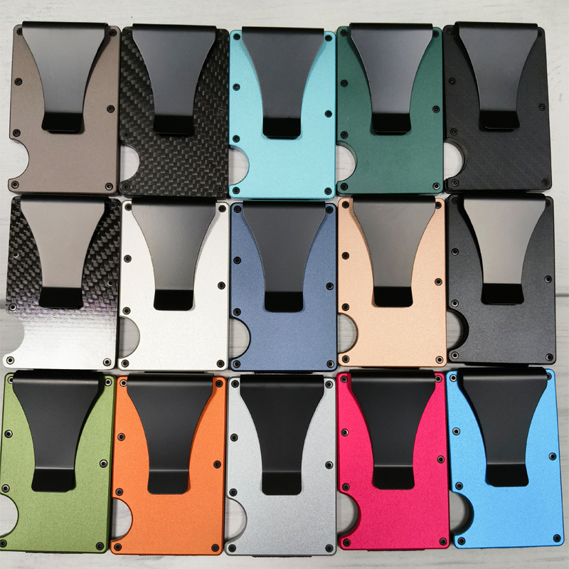 工場在庫カラーグラデーションメタルカードホルダーRFID盗難防止ブラシアルミニウム合金カードホルダーメンズ超薄型財布