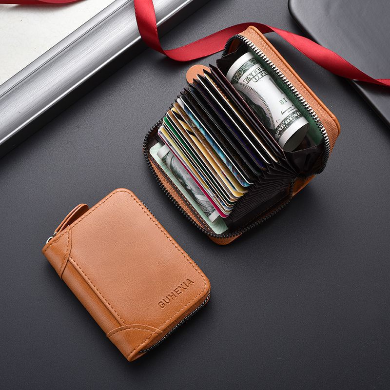 本革カードケース男性消磁防止カードカバー女性用マルチカードホルダーファスナー付信用状カードケース