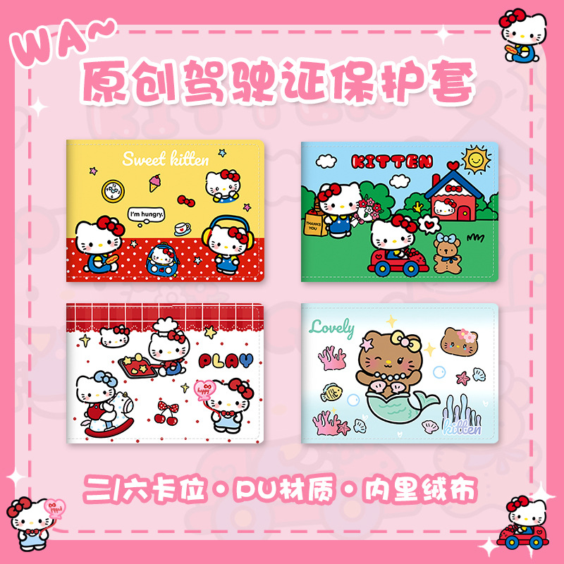 ハローキティ麦門自動車運転免許保護カバー皮カバー自動車運転免許証二合一