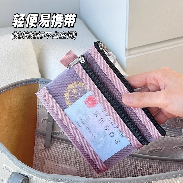二層メッシュ収納袋、ポータブル運転免許証収納袋、パスポート戸籍簿ジッパーバッグ、銀行カード透明カードバッグ