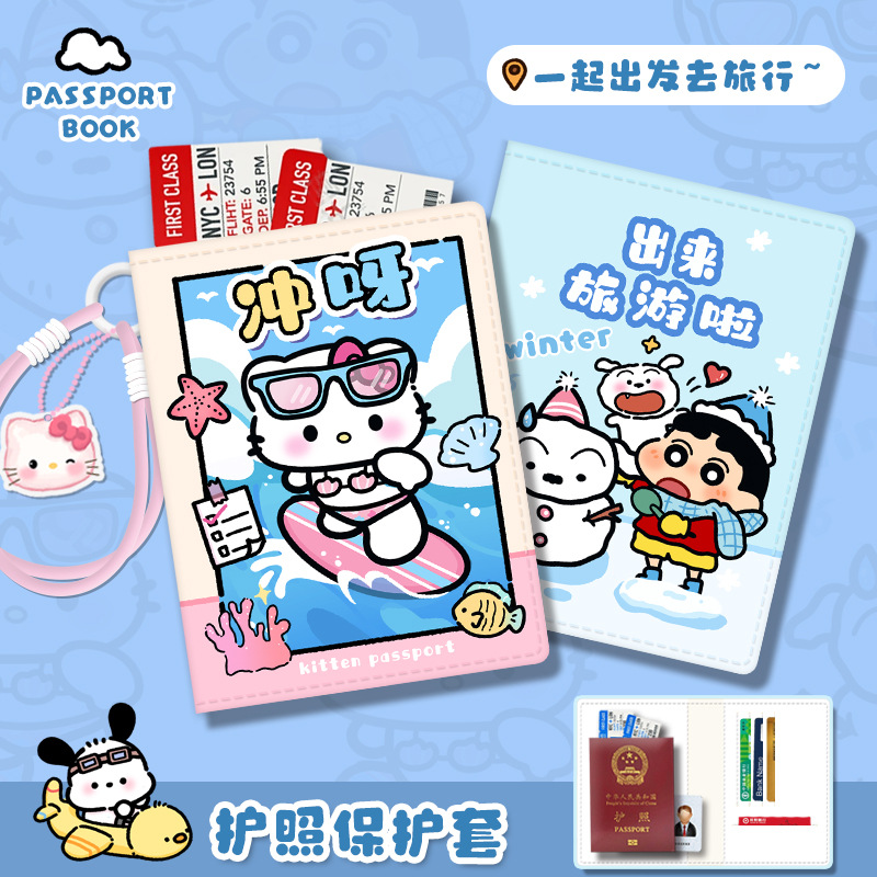 漫画かわいいパスポート保護カバーかわいい搭乗カードバッグ携帯旅行証明書収納バッグ