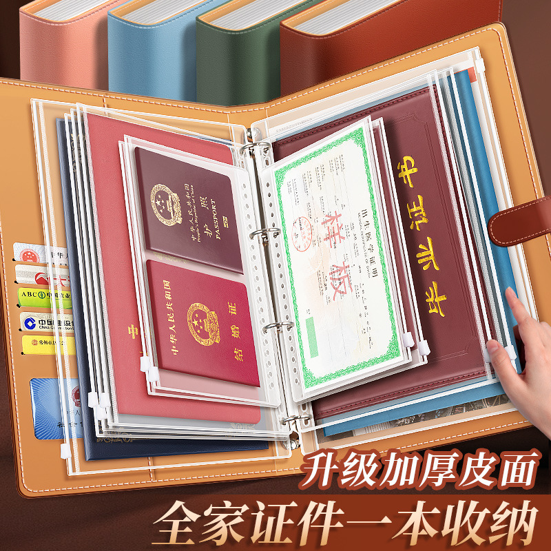 厚みのある革張りの家族の書類収納ブック、ルーズリーフ書類収納ブック、証明書書類バッグ、ハウスブック保護カバー