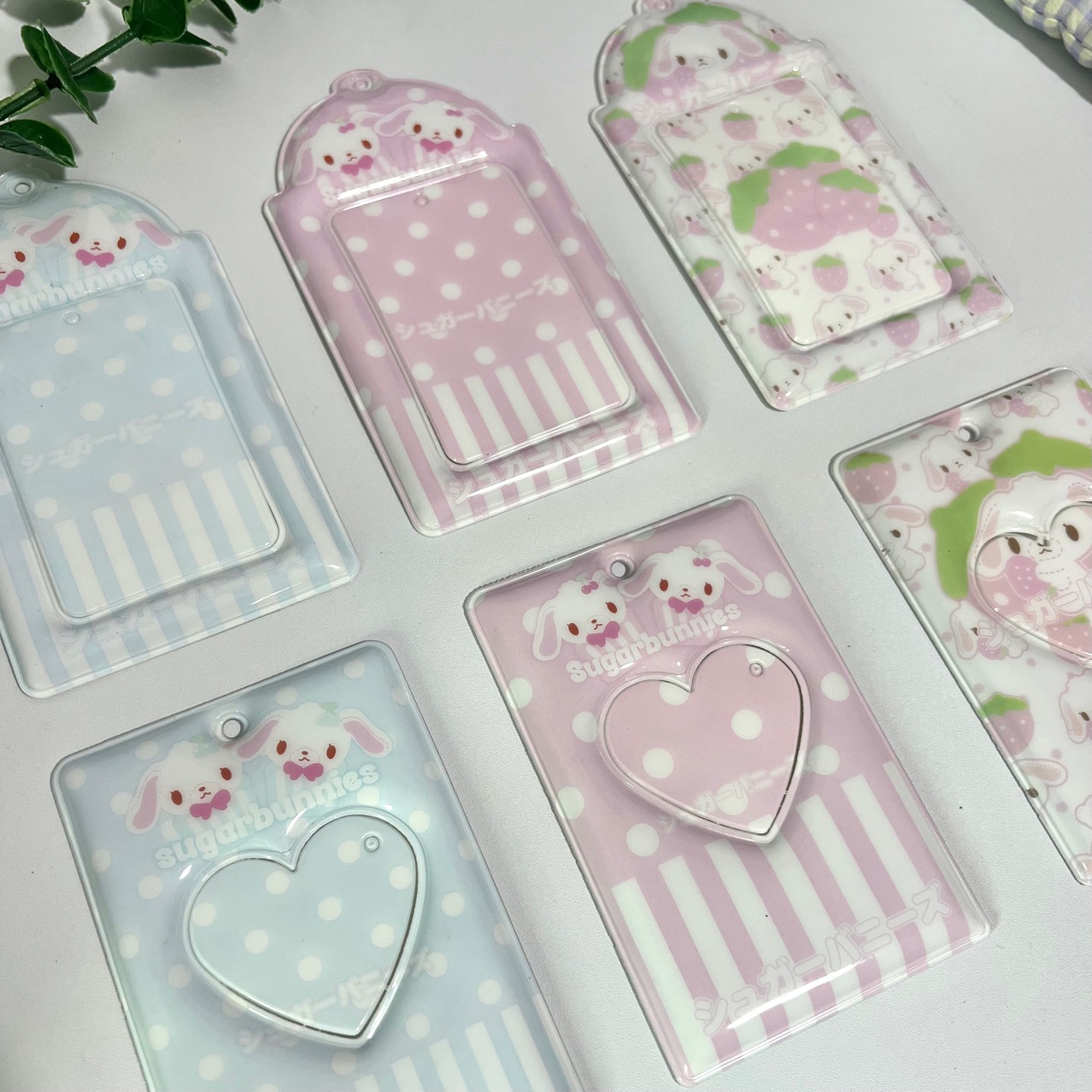 卸売供給かわいいピンクのカードホルダーフォトカードペンダントキーリングカードスリーブカードホルダー