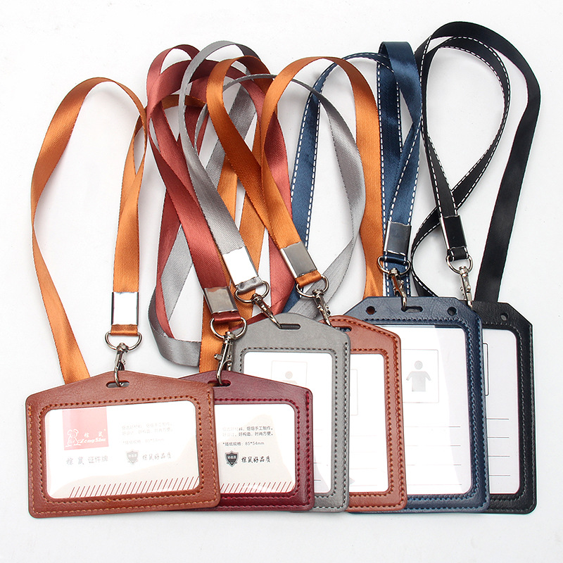 シングルカードスロット横型縦型ワークカード薄型レザーバッジレザー学生食事カード展示会首掛けカードホルダー