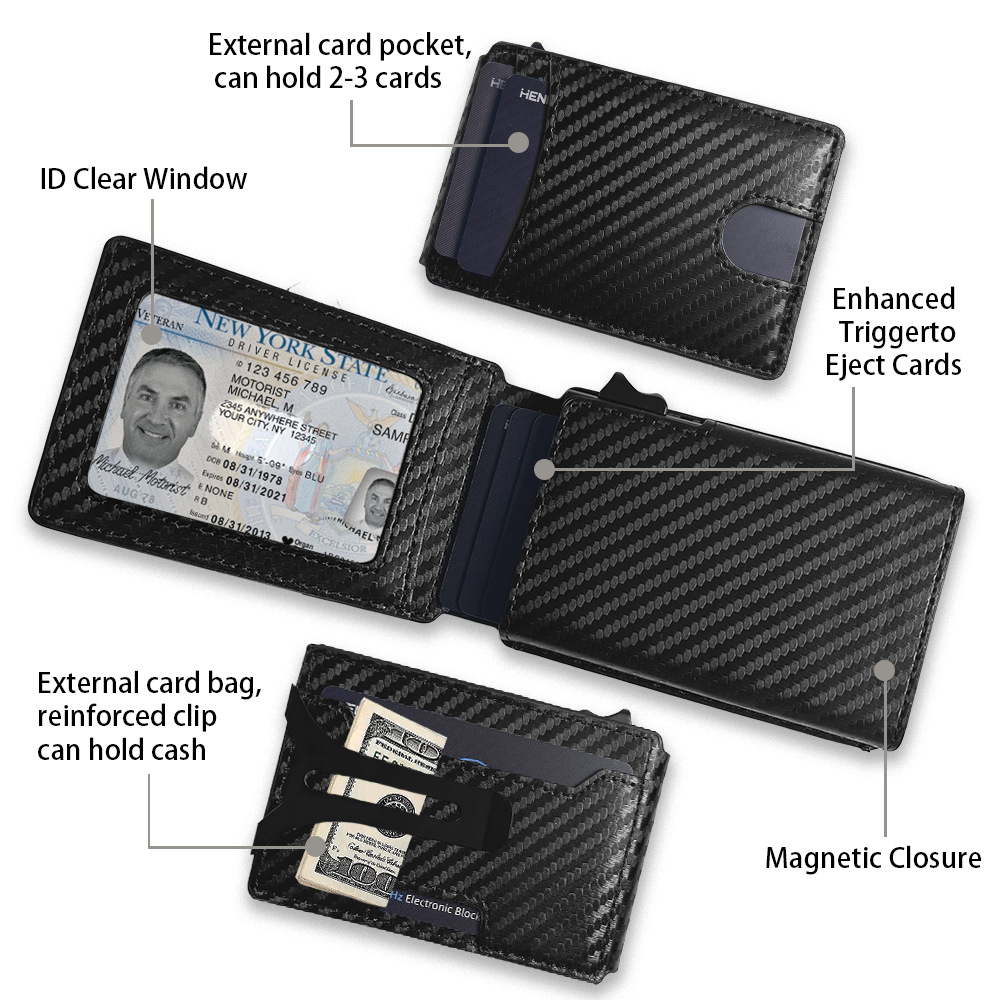 レトロ狂馬皮男性財布高級感自動弾カードRFID金属カードクリップ証明書小銭真皮カードバッグ