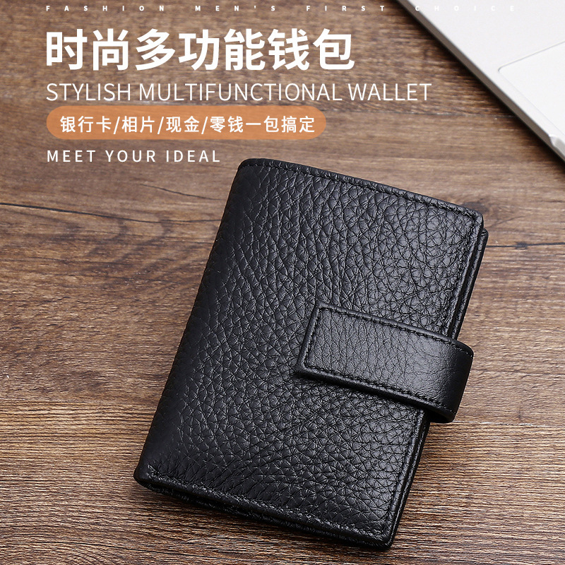 本革ベルトバインダーカードバッグトップ層牛革多機能ボタン付き財布財布クリップ工場卸売り