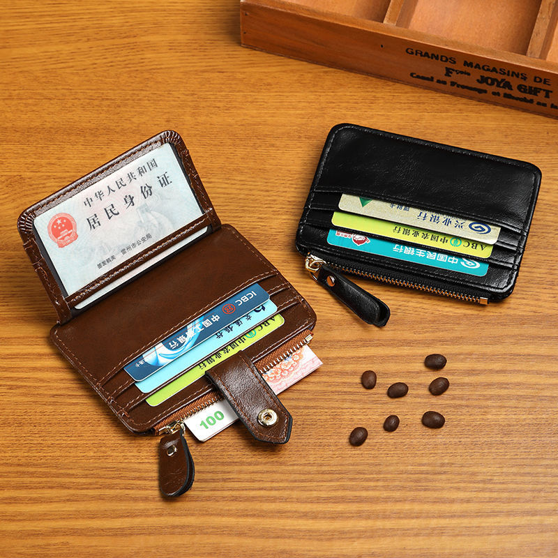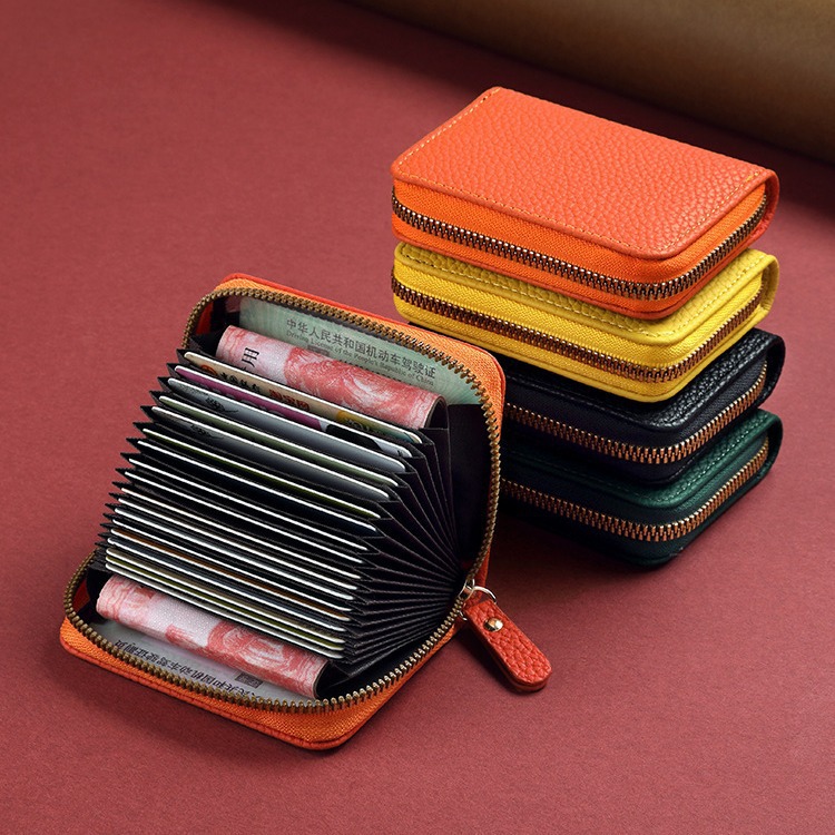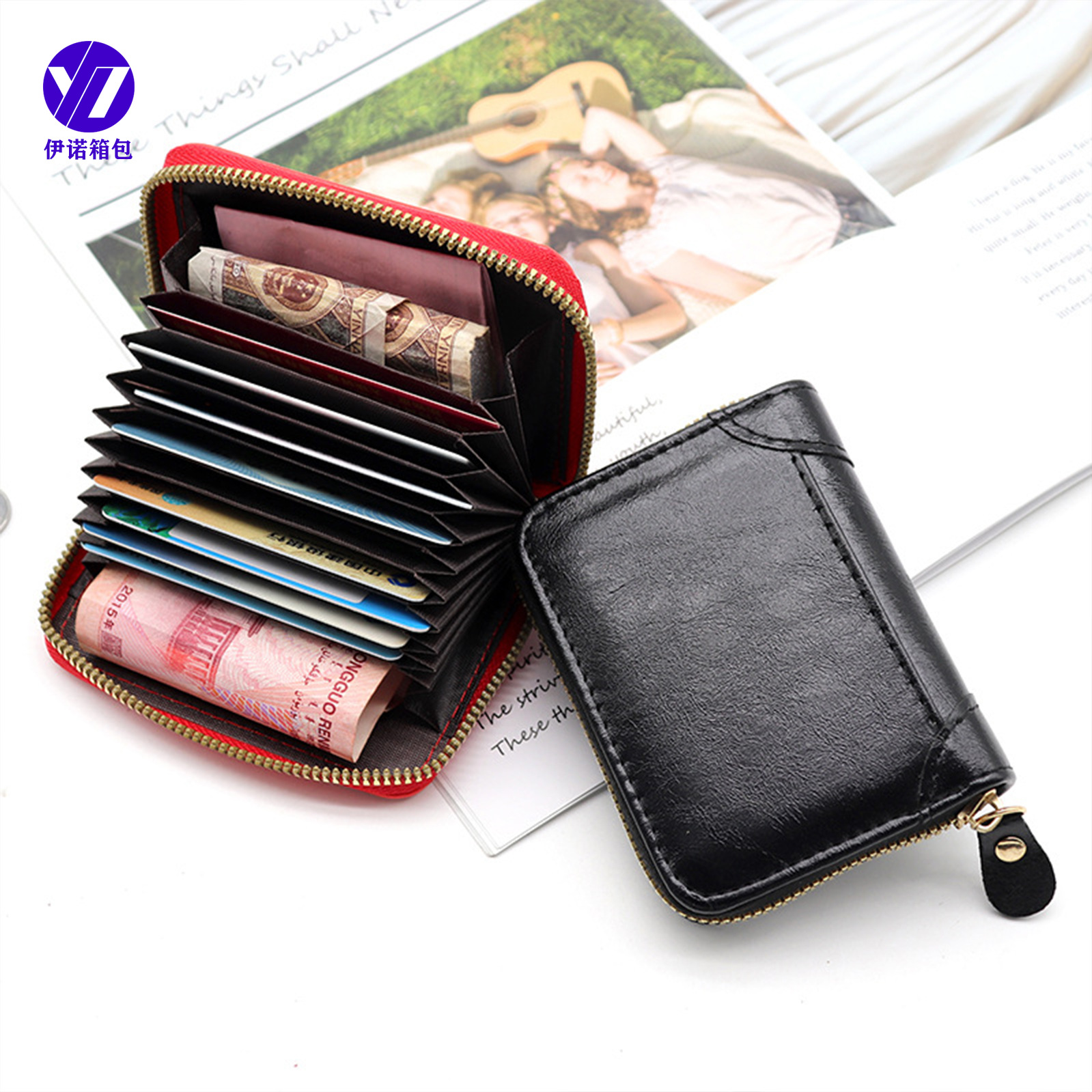 対外貿易カードバッグ女性マルチカードの牛革盗難防止ブラシRFID真皮消磁防止カードクリップファスナー信用運転免許証