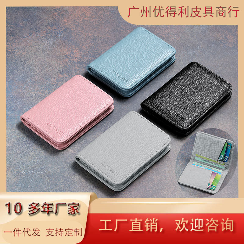 国境を越えた真皮カードバッグ男女の多カード位2折り畳み薄い大容量カードクリップ証明書バッグ卸売り代発