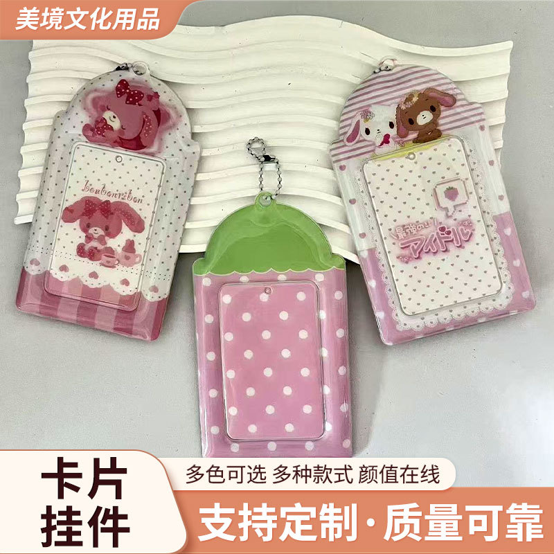 卸売供給かわいいピンクのカードホルダーフォトカードペンダントキーリングカードスリーブカードホルダー