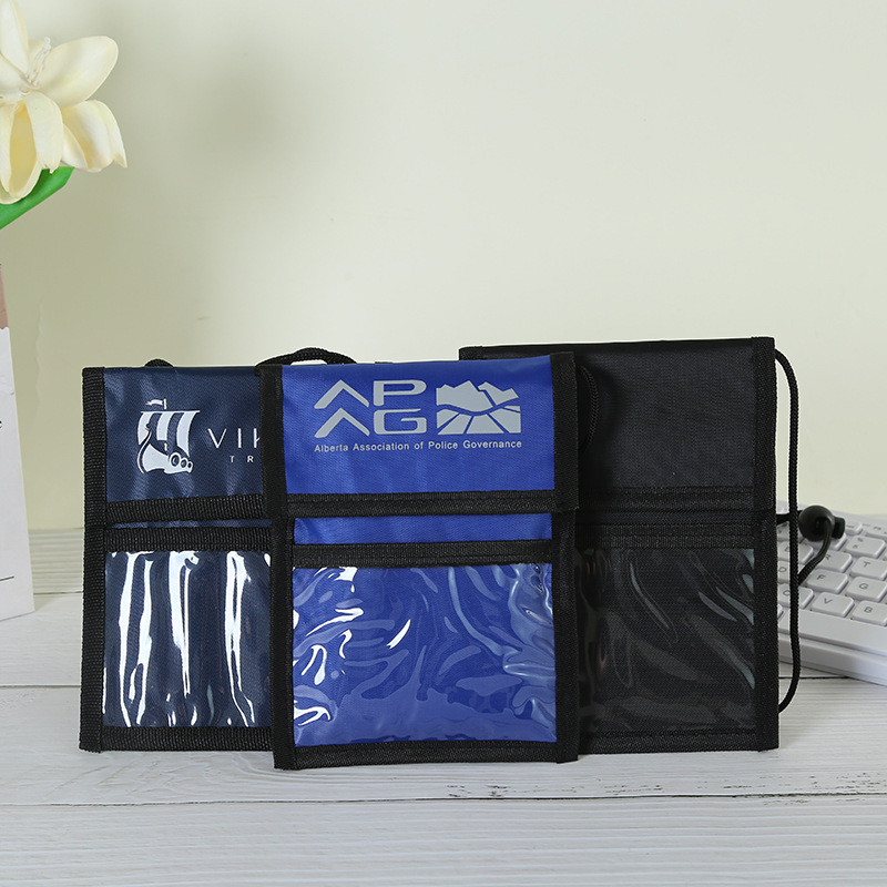 欧米の国境を越えて、印刷展示会の斜めショルダーの証明書の袋の防水のオックスフォードの布の筆の袋の首の証明書の袋のメーカーを掛けます。