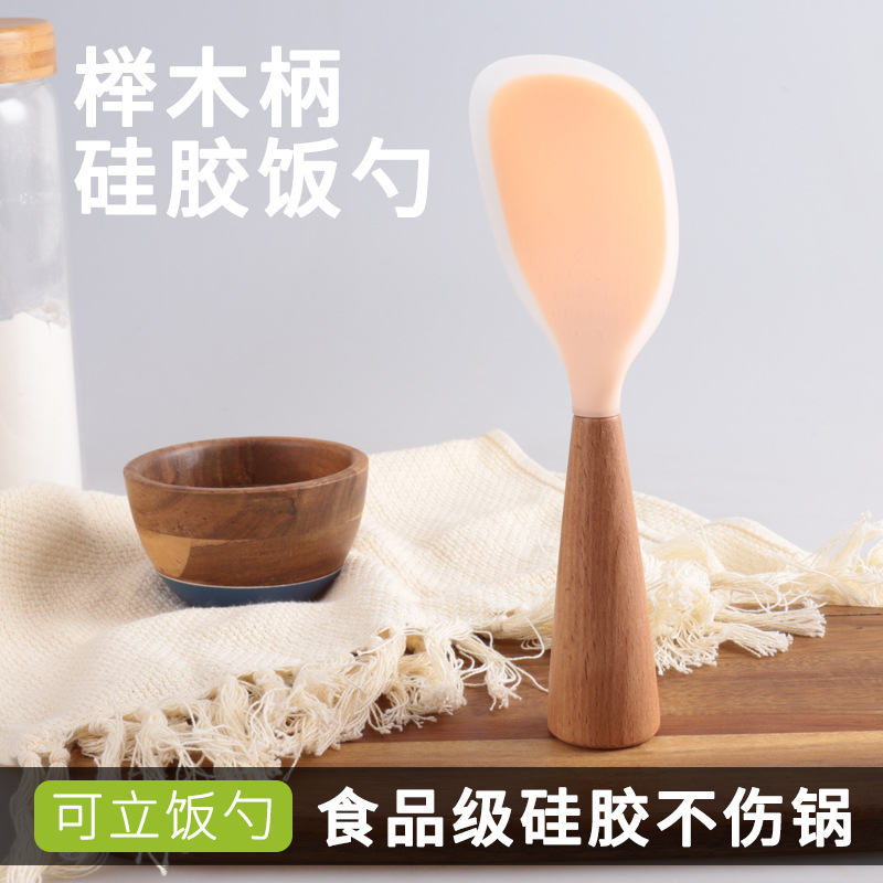 食品級縦型木柄シリカゲルしゃもじ滑り止め耐熱無粘ご飯ご飯スプーン家庭用炊飯器スプーン
