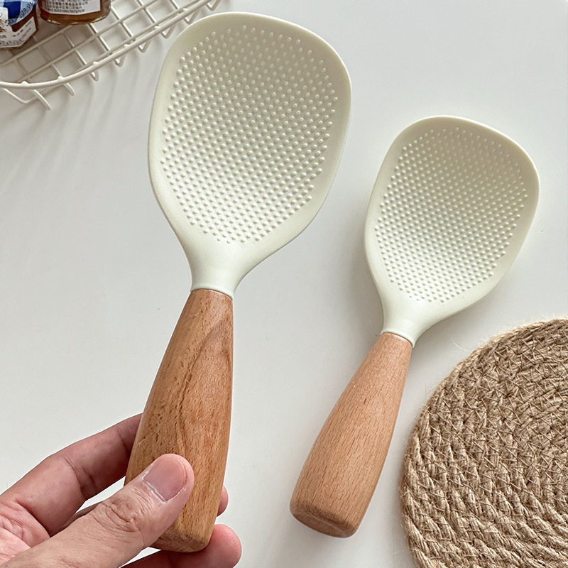 ムーニー木製ハンドルシリコンしゃもじ、縦型食品グレードシリコンしゃもじ、炊飯器しゃもじ、しゃもじ、スパチュラ