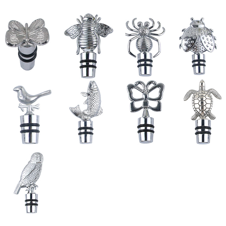 銀色動物二糸亜鉛合金酒栓蝶ミツバチクモテントウムシ小鳥魚亀装飾酒瓶栓