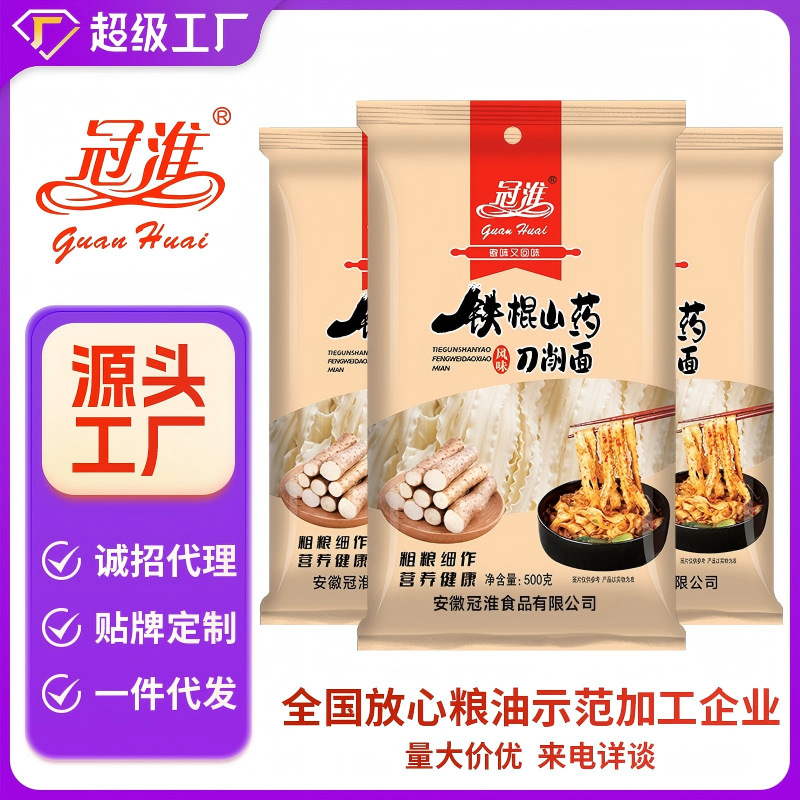 冠淮鉄棍山芋削麺500g大袋麺、炒め麺、幅広麺、乾麺、箱売り卸売